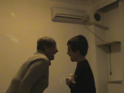 Μετά από μένα είχε σειρά μια εκπαιδεύομενη, που με είχε παρακολουθήσει από το τζάμι-καθρέφτη όλη την ώρα. Είναι μια ευχάριστη κοπέλα, αλλά δεν έχει αποκτήσει ακόμα τον αέρα του χαλαρού παιχνιδιού. Γι' αυτό η στάση της ήταν αρκετά σοβαρή. Τον ακολούθησε καλά, έκανε ο,τι ζητούσε ο Γιάννης, αλλά εκείνος απογοητεύτηκε που του έλειψαν τα χαζά!! Έγινε επιθετικός μαζί της. Την τράβηξε τα μαλλιά. Ήθελε να φύγει από το δωμάτιο.