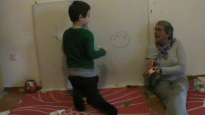 Χτες παίξαμε ένα ωραίο παιχνίδι με τον Ορέστη. Καθόταν ήρεμα στα μαξιλάρια και εγώ μπροστά του. Του τραγουδούσα μια μελωδία και είδα ότι του άρεσε αυτό. Όταν σταμάτησα μετά από λίγο του είπα: "Αν θέλεις να συνεχίσω, θα με κοιτάς στα μάτια." Και έτσι κάθε φορά που με κοίταξε, τραγουδούσα. Όταν κοιτούσε αλλού, έπαψα. Μερικές φορές άργησε αρκετά να με κοιτάει και για να μην χάσουμε την αλληλεπίδραση, τραγουδούσα ψιθυριστά τότε. Μόλις με έριξε πάλι μια ματιά, ανέβασα την φωνή μου. Χασκογελούσε όλη την ώρα. Του άρεσε η διαδικασία, φαίνεται!