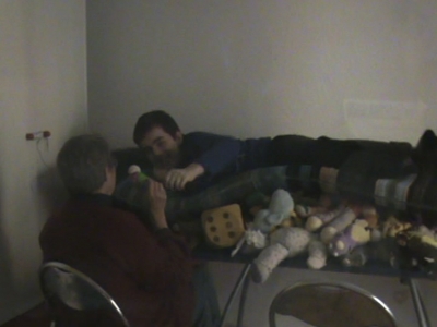 Καινούριο παιχνίδι του Παναγιώτη: Βάζει μαξιλάρια στο τραπεζάκι, το στρώμα από πάνω και έπειτα βάζει όλα τα λούτρινα ζωάκια από κάτω για να υψώσει το στρώμα περισσότερο. Μετά θέλει να ανέβει επάνω... Αυτό είναι δύσκολο γιατί χρειάζεται να ανέβει σε μια καρέκλα για να φτάσει τόσο ψηλά. Φοβάται να στέκεται σε μια καρέκλα. Οπότε χρειάζεται τη βοήθειά μου! Έπειτα όμως: Ξάπλα!! Είναι πασάς!