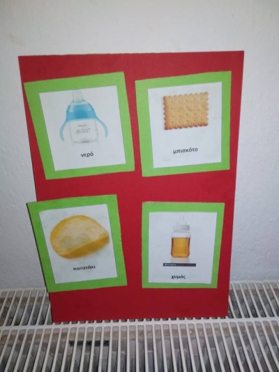 Τέλος οι τσιρίδες! Τώρα ο Κωνσταντίνος μπορεί να μας δείξει ξεκάθαρα τί επιθυμεί! Συνήθως θέλει πατατάκια. Δεν το συνηστώ, αλλά προκειμένου να μάθει πώς λειτουργεί η επικοινωνία, θυσιάζουμε την υγεία για λίγο.